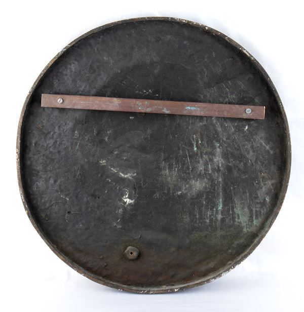 Round bronze plaque signed "E.BARONI" at the bottom at six o'clock, depicting the profile of Faustina (Annia Galeria Faustina), Roman empress, wife of Marcus Aurelius and mother of Commodus. It was created by the famous sculptor Baroni specifically for the shipowner Pier Giulio Breschi, owner of a Rome-Civitavecchia maritime and river transport fleet, as a symbol placed on board the "Faustina" ship of the aforementioned fleet active in Genoa at the beginning of the 20th century. Around the profile of the empress we find the text in relief "FAUSTINAE NOMEN FAUSTUM TIBI SIT NAVIS OMEN" - In the lot we find an advertising card for the Breschi fleet. The plaque measures approximately 53 cm in diameter, for an approximate weight of 10 kg. In excellent condition