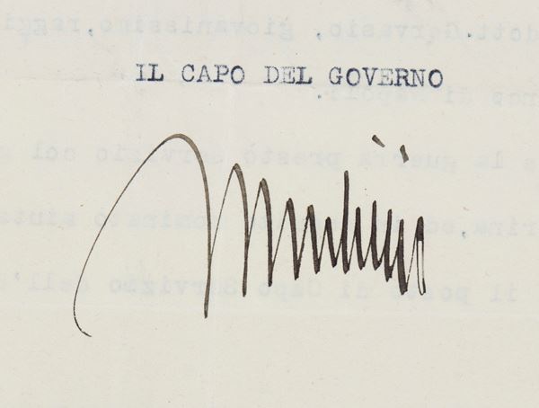 One sheet letter, typewritten, and original autograph signed by Mussolini.