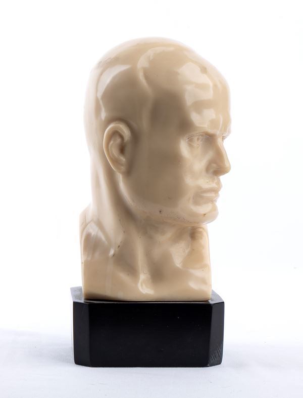 Bust of Benito Mussolini, with face turned to his left, bare back. Solidarity on its own basis. In excellent condition. Original of the time. Bust height approximately 20 cm (base 9x8 cm)