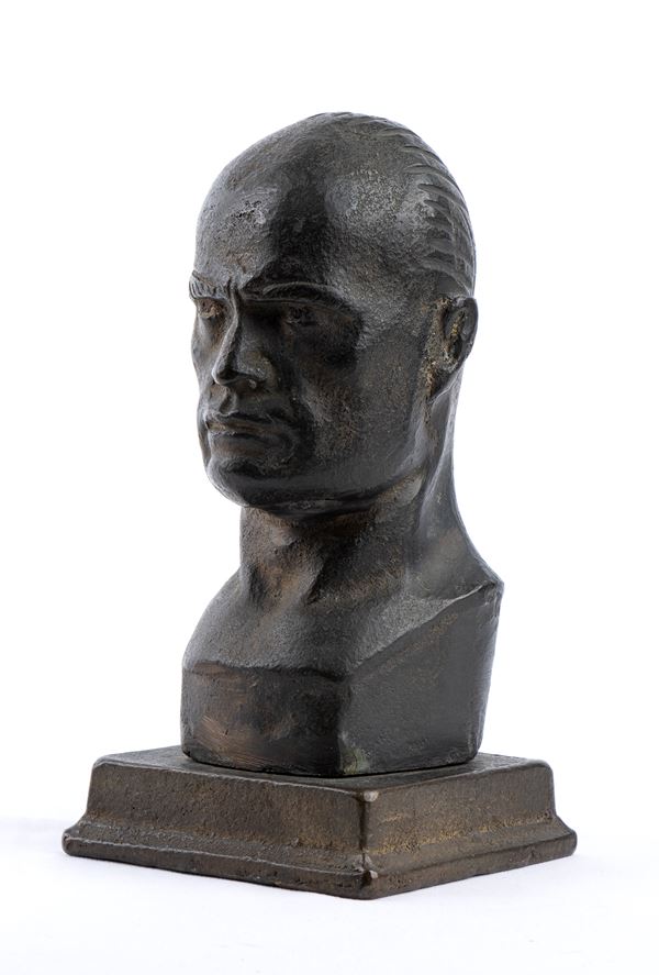 Bronze bust, beautiful depiction of the Duce with a determined expression, period from the late 1920s to the early 1930s. Unsigned, original, dimensions approximately 18x9.5 cm