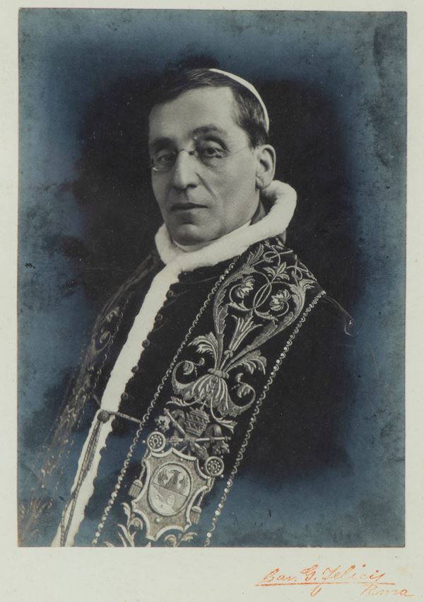 Official photo signed below, in red, G.Felici - Rome, mounted on rigid cardboard, in a period frame.