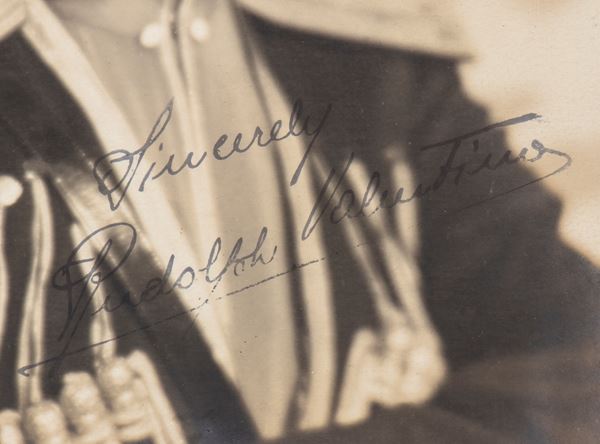 B/w half-length photo of Rudolph Valentino, in the role of the BLACK EAGLE from the film "The Eagle" (directed by Clarence Brown - 1925) with original autograph signature, in black ink "Sincerely - Rudolph Valentino"