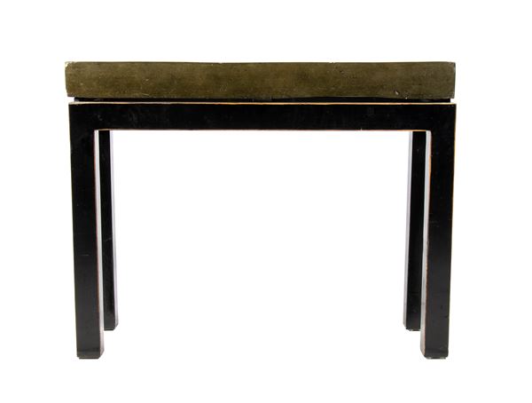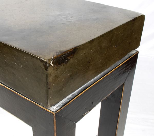 rectangular shape single structure, in ebonized wood, supporting the imposing green stone of the top. Top with minor defects.
