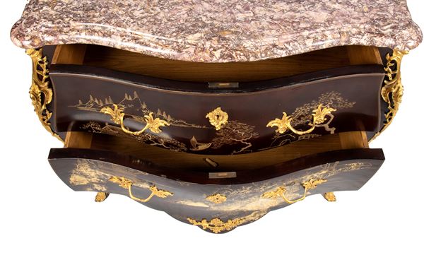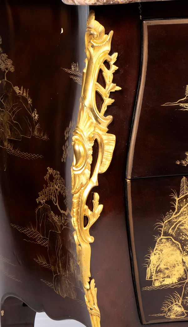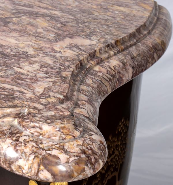 adorned with gilded bronze applications the shaped marble top.