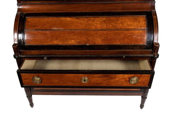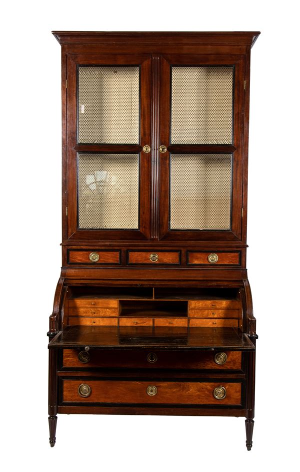 Italian double-body showcase with roller flap, walnut and maple, 1800 - 1810