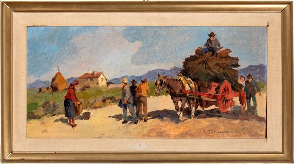 Signed lower right: C. Domenici, titled and dated on the back: C. Domenici, Strada movimentata, 45