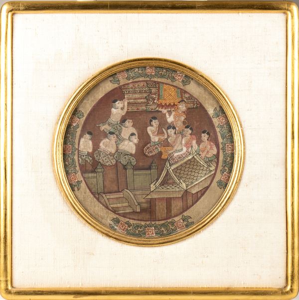 A COLOURS ON FABRIC PAINTING WITH BUDDHA AND FAITHFUL
