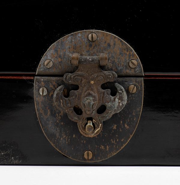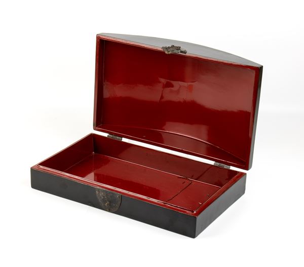 A LACQUERED WOOD BOX AND LID