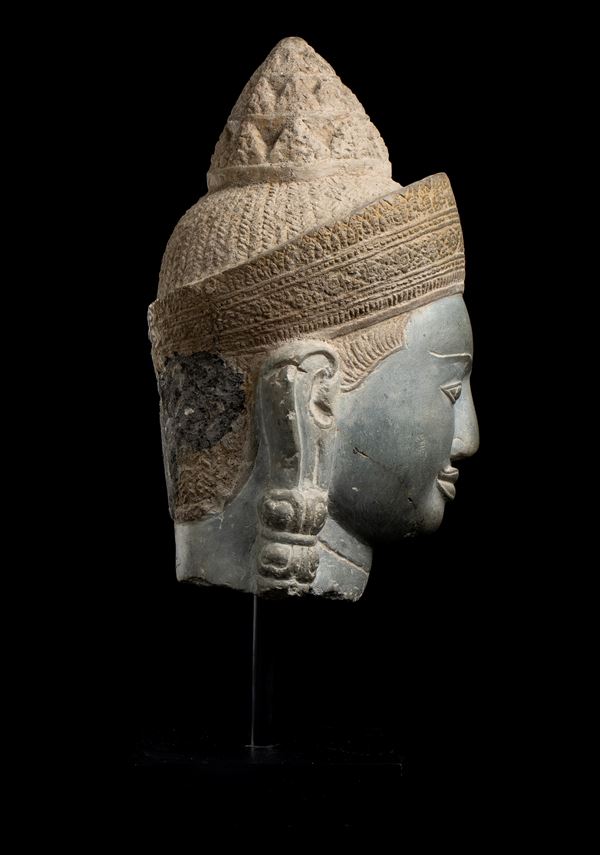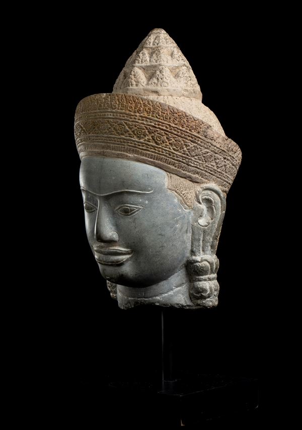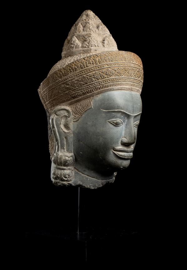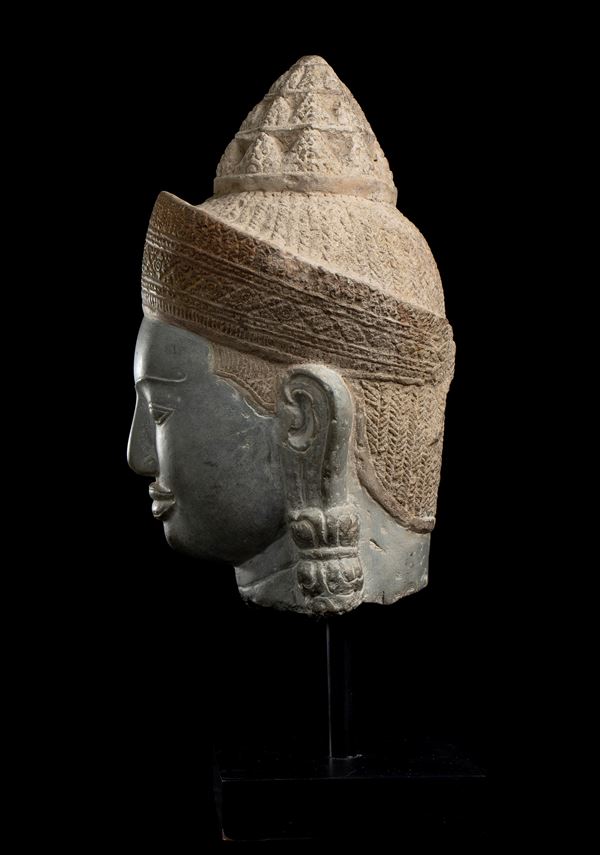 A MONUMENTAL STONE HEAD OF A DEITY