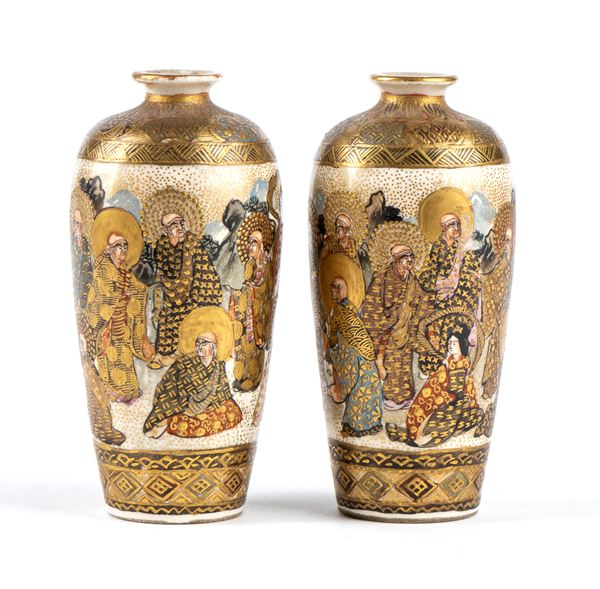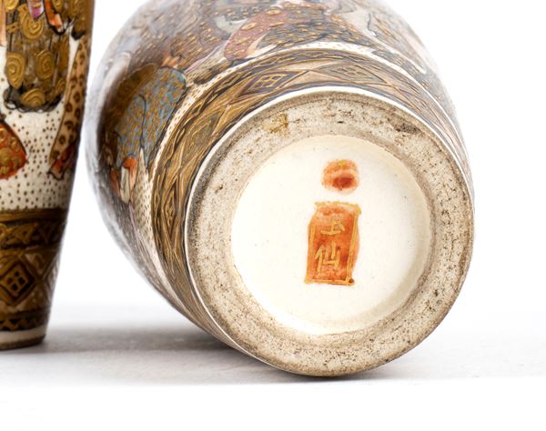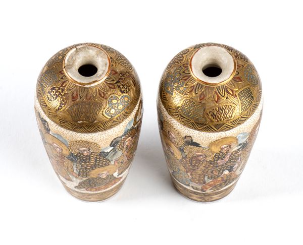 A PAIR OF SMALL SATSUMA CERAMIC VASES