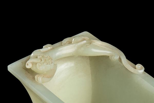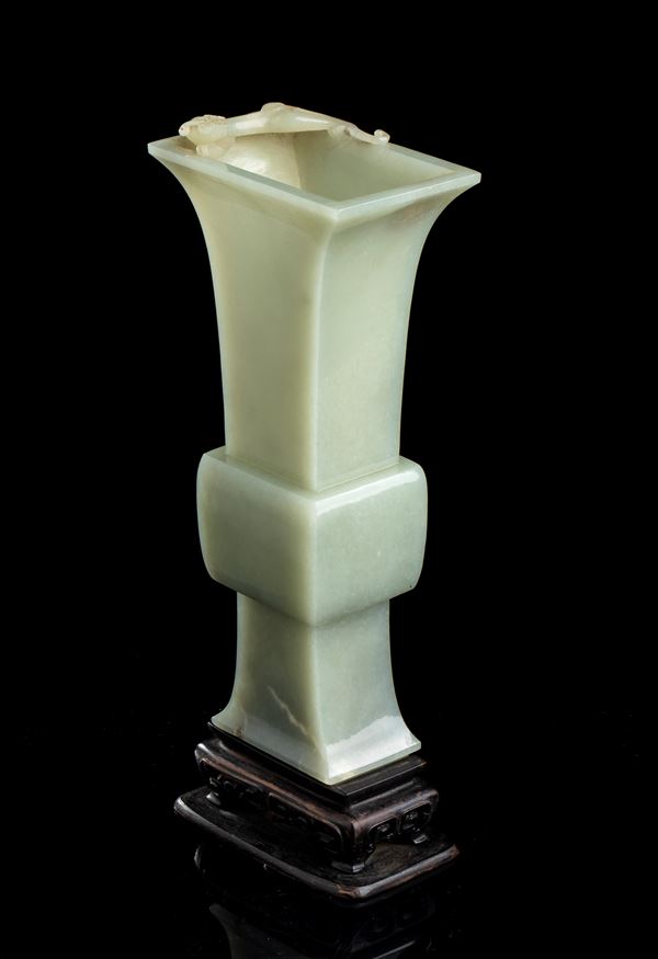 A PALE GREEN JADE GU VASE