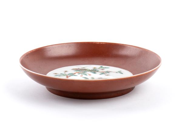 A POLYCHROME ENAMELLED PORCELAIN DISH