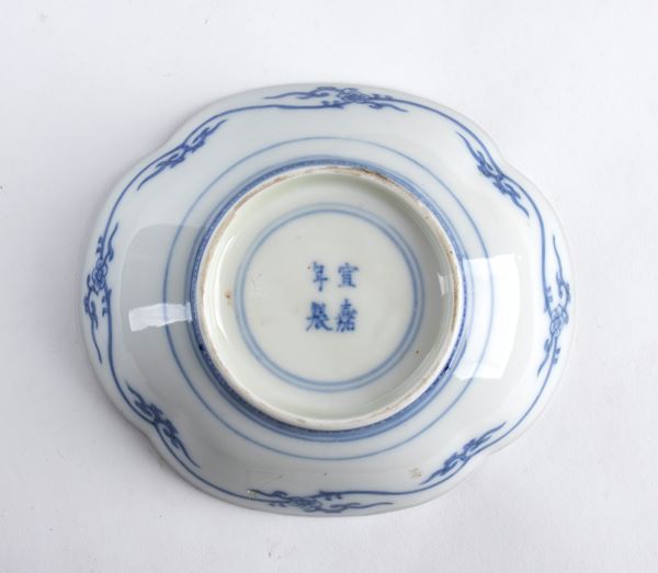 The center of the ground with a dragon, the inside of the walls with landscapes, 宣嘉年製 mark to the center of the base.