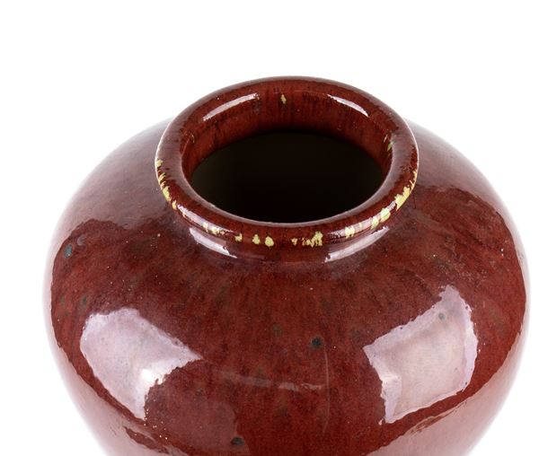 A 'SANG DE BOEUF' GLAZED PORCELAIN BALUSTER VASE
