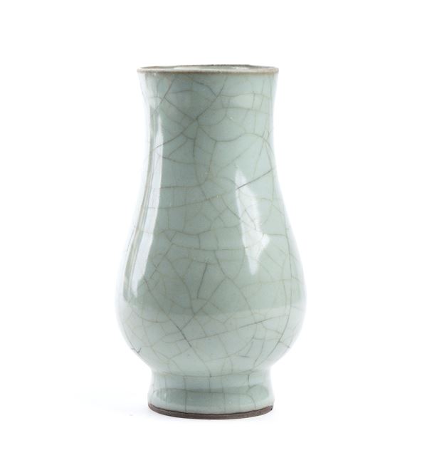 A SMALL GUAN-TYPE CÉLADON GLAZED CERAMIC VASE