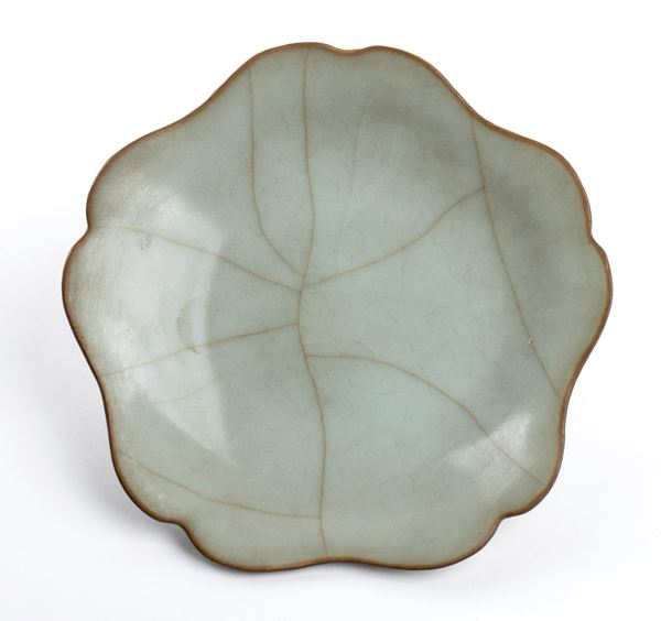 A SMALL GUAN-TYPE GLAZED CERAMIC DISH