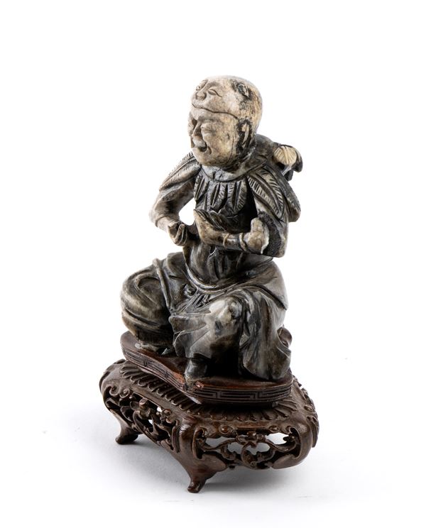 A SOAPSTONE FIGURE OF AN IMMORTAL