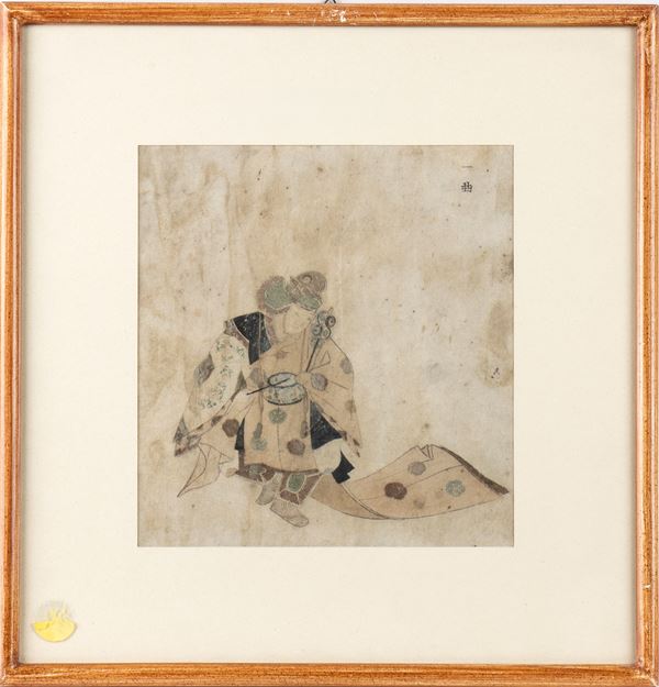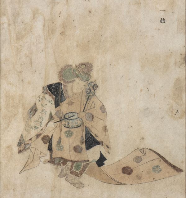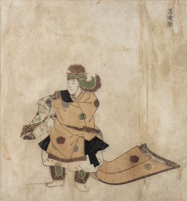 THREE POLYCHROME WOODBLOCK PRINTS WITH ACTORS OF THE BUGAKU THEATER