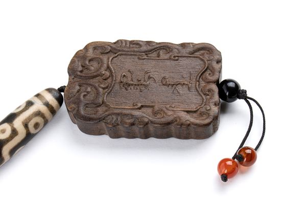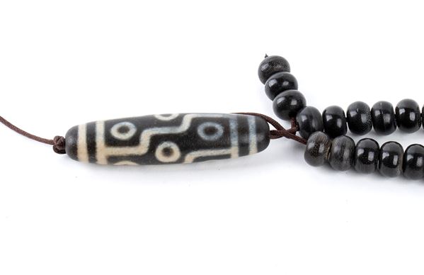 TWO HORN NECKLACES WITH THREE DZI AND A WOOD PENDANT