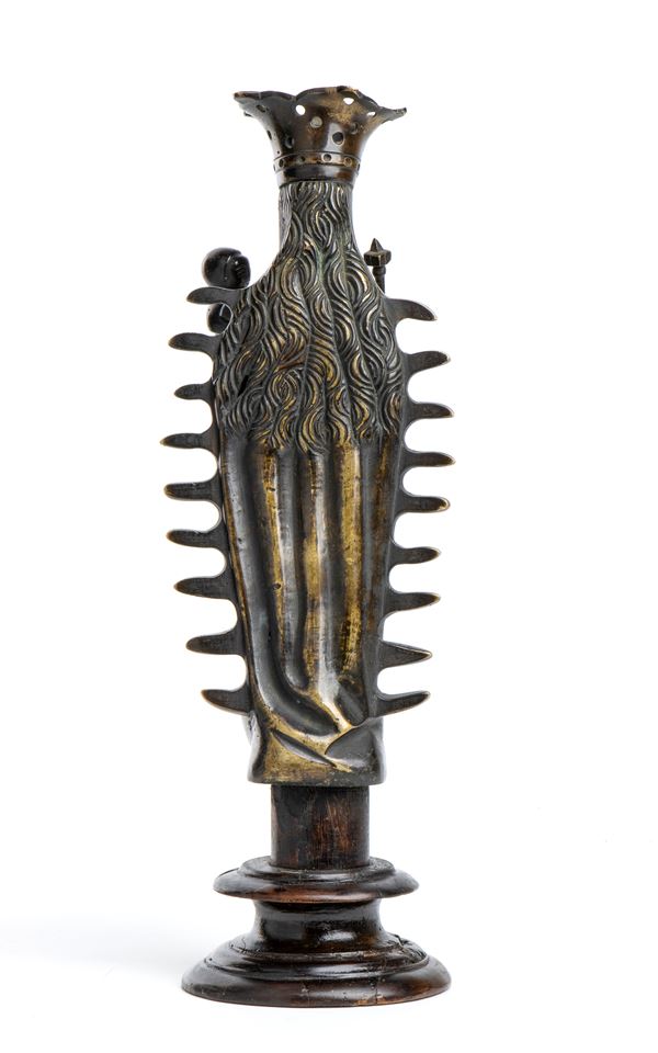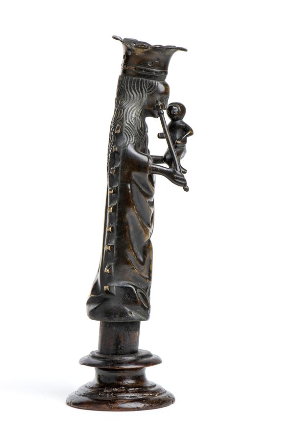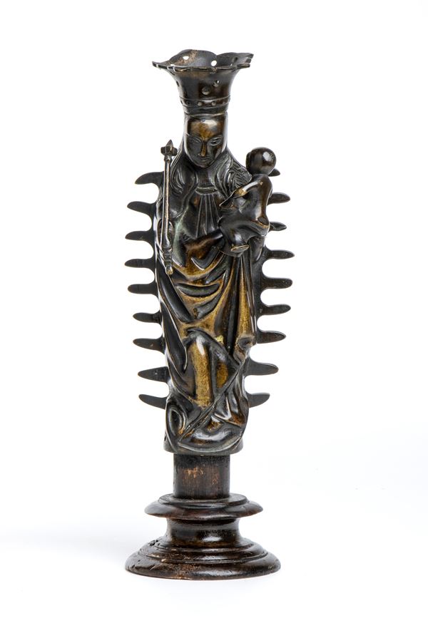 This rare piece of chandelier represents Madonna with Child, which was cast separately and placed in the central axis of the stem (in fact the internal part is hollow for this purpose).