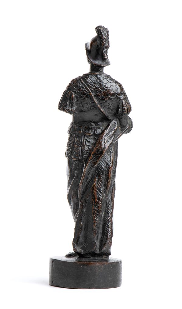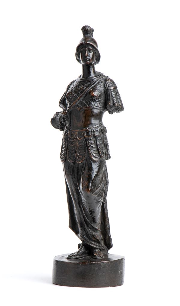 This highly original Minerva was designed as an archaeological excavation object with some parts missing. An example of similar bronze is Tullio Lombardo's Eve, now in Vienna, made without limbs in imitation of excavated bronzes (Montague op. Cit. page 42). Also the so-called "Girl from Boreas", a naked girl with a turban, a fine excavated bronze found with missing limbs, was often replicated until the 19th century.
