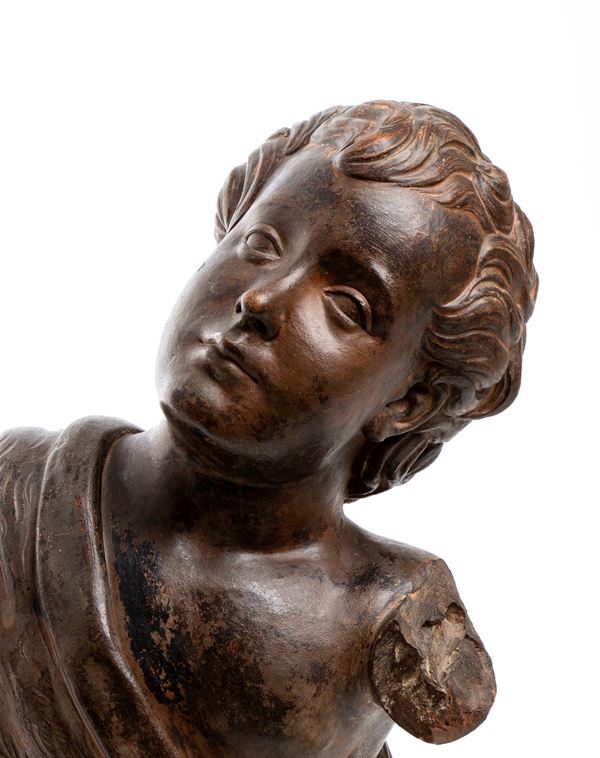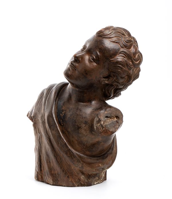 The sculpture represents the infant Saint John (also recognizable by the camel skin that falls over his right shoulder).