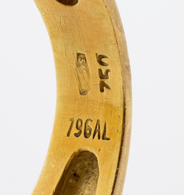 Hallmarked "750 - 796 AL". IT size 14 - US size 6 1/2. Weight: 10.8 g.