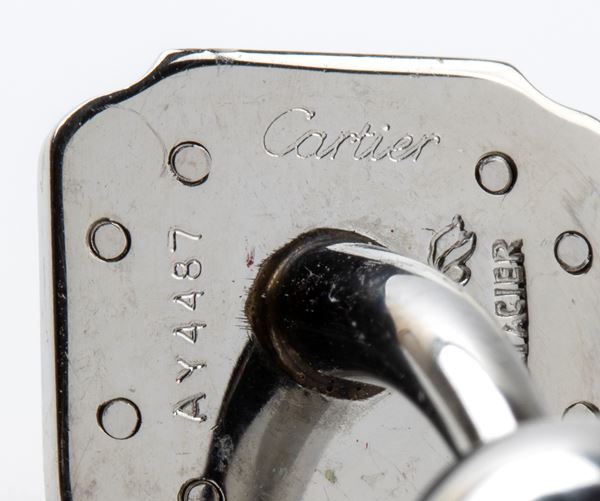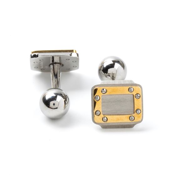 each in geometric shape, steel and 18k yellow gold. Signed CARTIER.