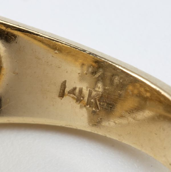Hallmarked "14k". IT size 15.5 - US size 7 1/2. Weight 8.1 g.