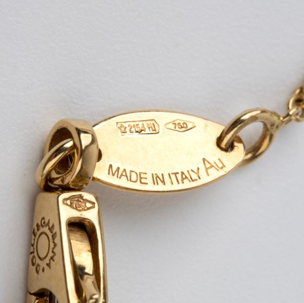 Hallmarked "750 - 2154 MI - AU - MADE IN ITALY". Chain length: 42 cm. Pendant dimensions: 3.5 x 2 cm. Weight 8.9 g.