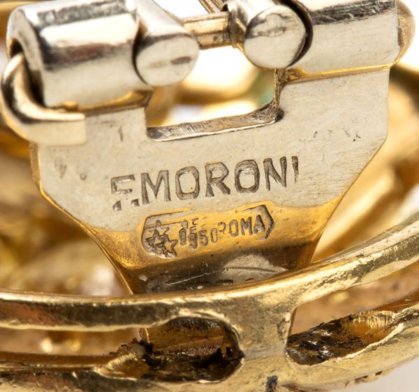 leaf-shaped in 18k yellow gold. Signed F.MORONI.