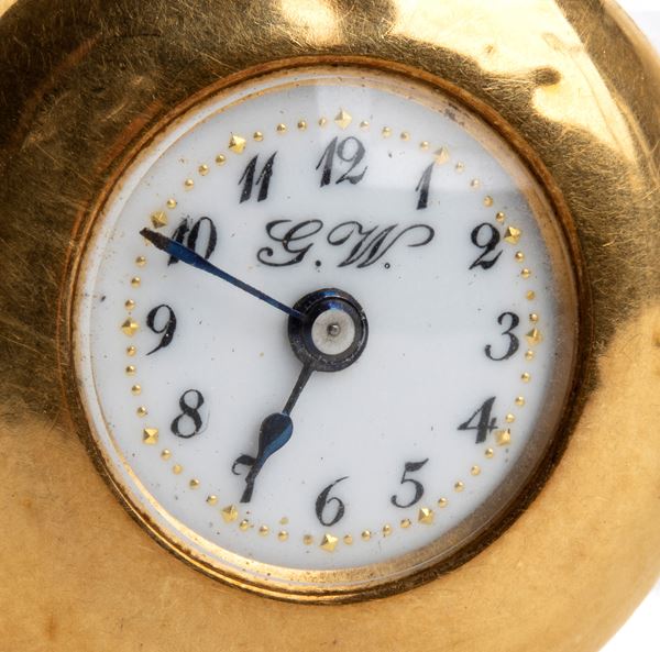 Case in 18K gold, white enamel dial with Arabic numerals and black hands stamped "G.W.".