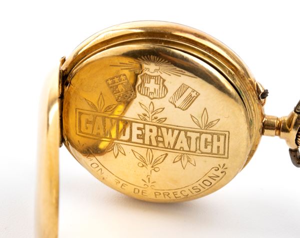 Hallmarked on the inside of the case 18K - Globo Depose - 106101’ and “Gander watch - Montre de precision”.