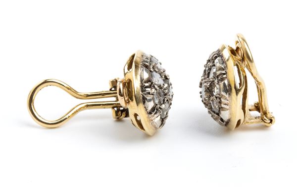 round shaped, embellished with n. 18 round shaped diamonds, rose cut. Clip clasp.