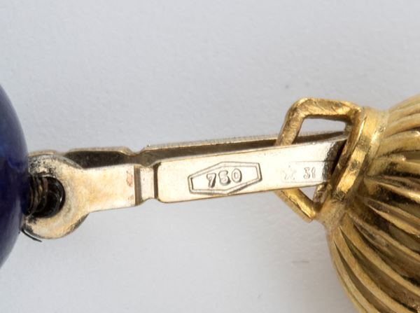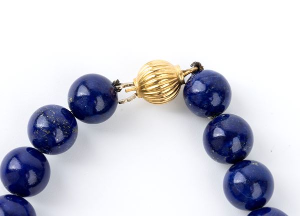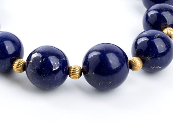 composed of a one strand of graduated lapis lazuli beads separated by 18k yellow gold podded spheres.
