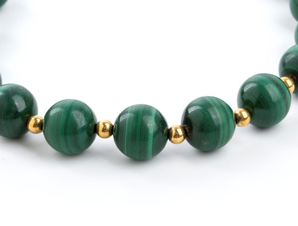 One strand of graduated malachite beads separated by 18k yellow gold small spheres.