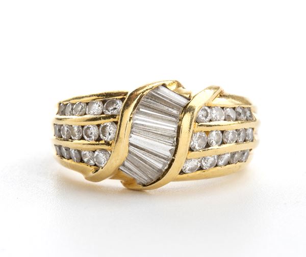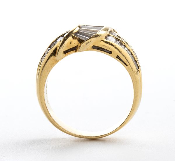 N. 30 diamonds, round shape, brilliant cut and n. 09 rectangular shape step cut diamonds, approx. 1.60 ct tot, , F-G, IF-VVS.