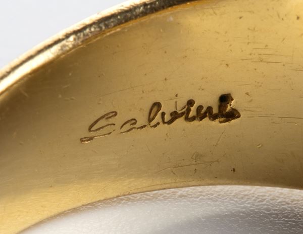 18k yellow gold, with diamond ribbon motif. Signed SALVINI.