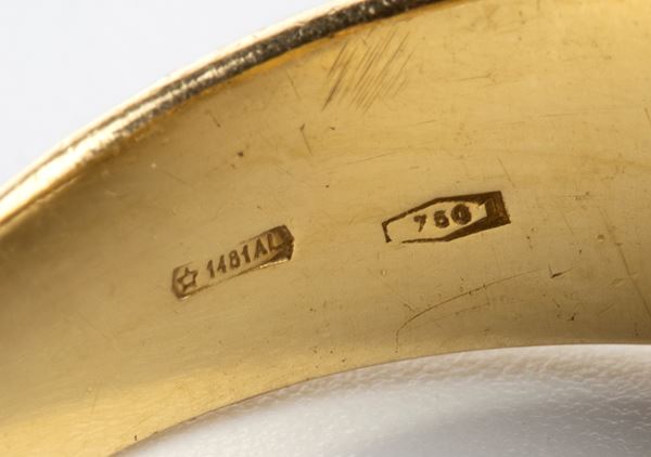 Hallmarked "750 - 1481 AL". IT Size 16 - US Size 7 1/2. Weight: 9.1 g.