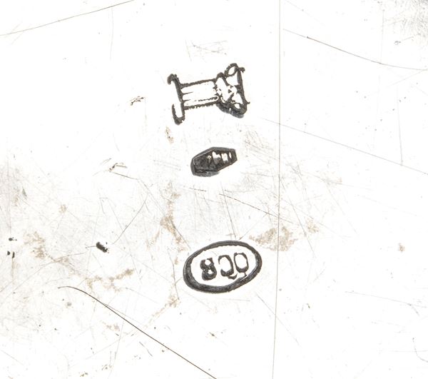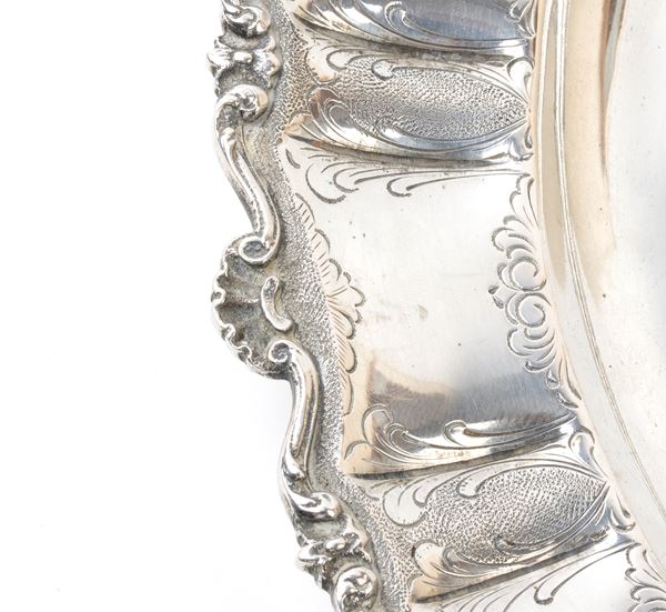 round shaped with vegetal and shell details on the edges, in silver with a minimum fineness of 800/1000.
