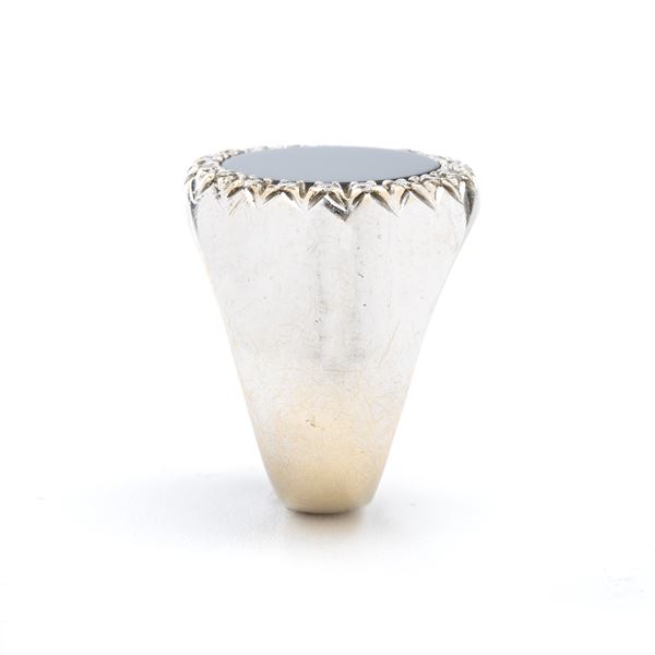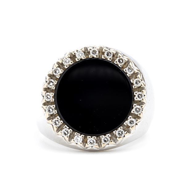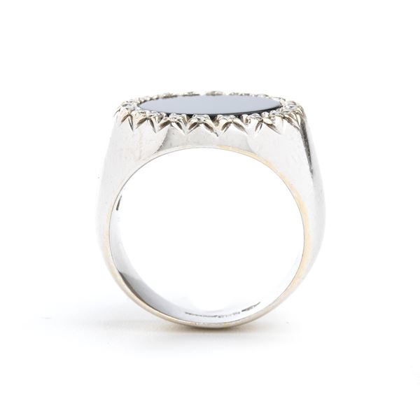 18k white gold, set with onyx framed by n. 20 round brilliant-cut diamonds, approx. 0.20 ct, G-H, VVS-VS. Signed ZOCCAI.