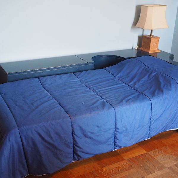 composed of: bookcase 213 x 127 x 33 cm; desk 73 x 130 x 65 cm; bed 202 x 64 x 92 cm; stool 45 x 45 x 45 cm. Furniture located in the Roman home of architect Luigi Moretti.