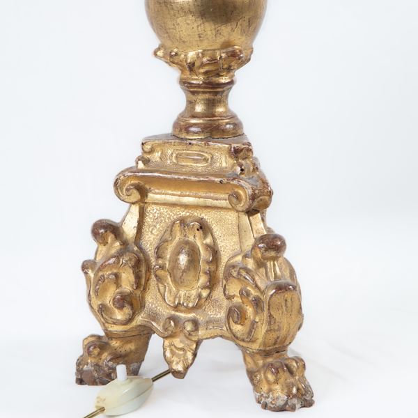 sculpted and engraved with phytomorphic motifs with three lion-shaped support feet.