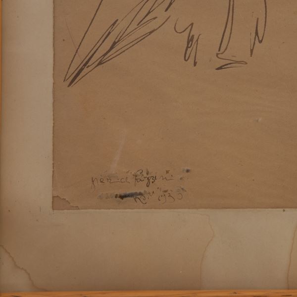 Pair of birds of prey, ink drawing on paper, 1930