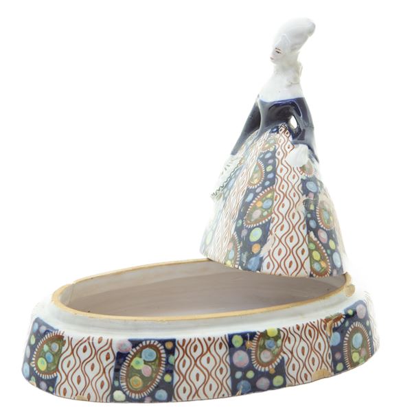 in the shape of a lady. Manufacture's signature in blue under enamel on the base