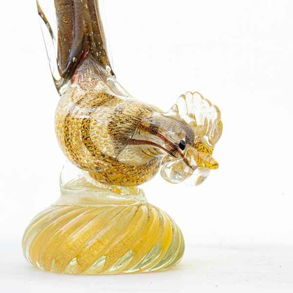 Partridge in transparent glass with gold stripes, Murano, mid-20th century