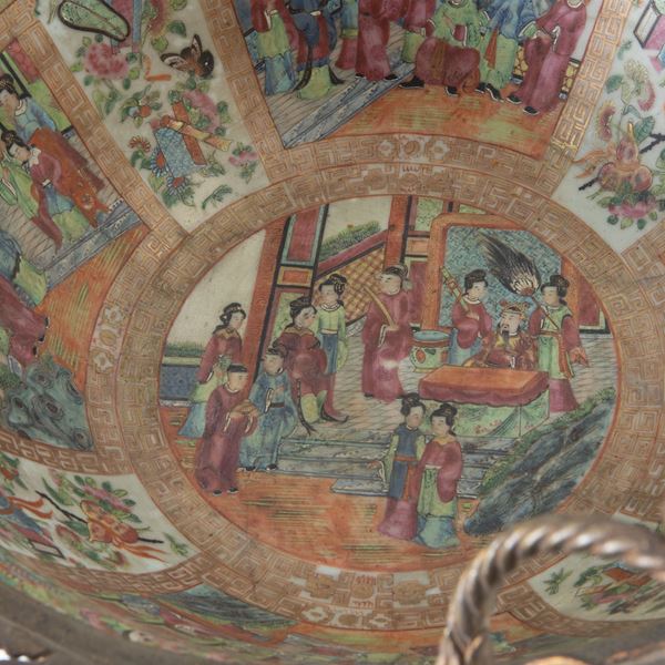 Polychrome porcelain basin with genre scenes, 19th century Canton production