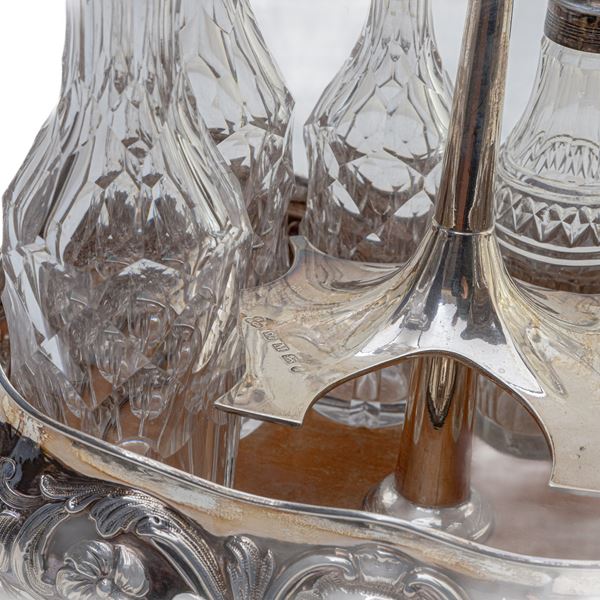 Silver vinegar bottle with seven crystal bottles, English stamps, second half of the 19th century