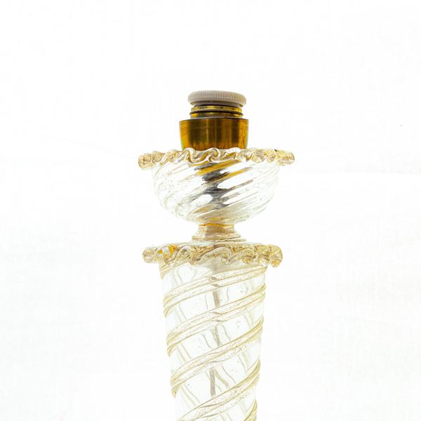 with disc-shaped foot, truncated cone body ending with lamp holder.