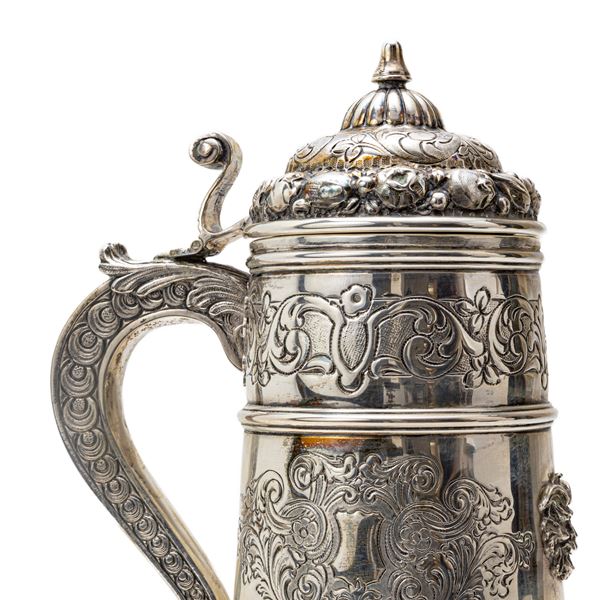 engraved and relief parts with floral and fruit motifs, comma grip. Gr. 1077